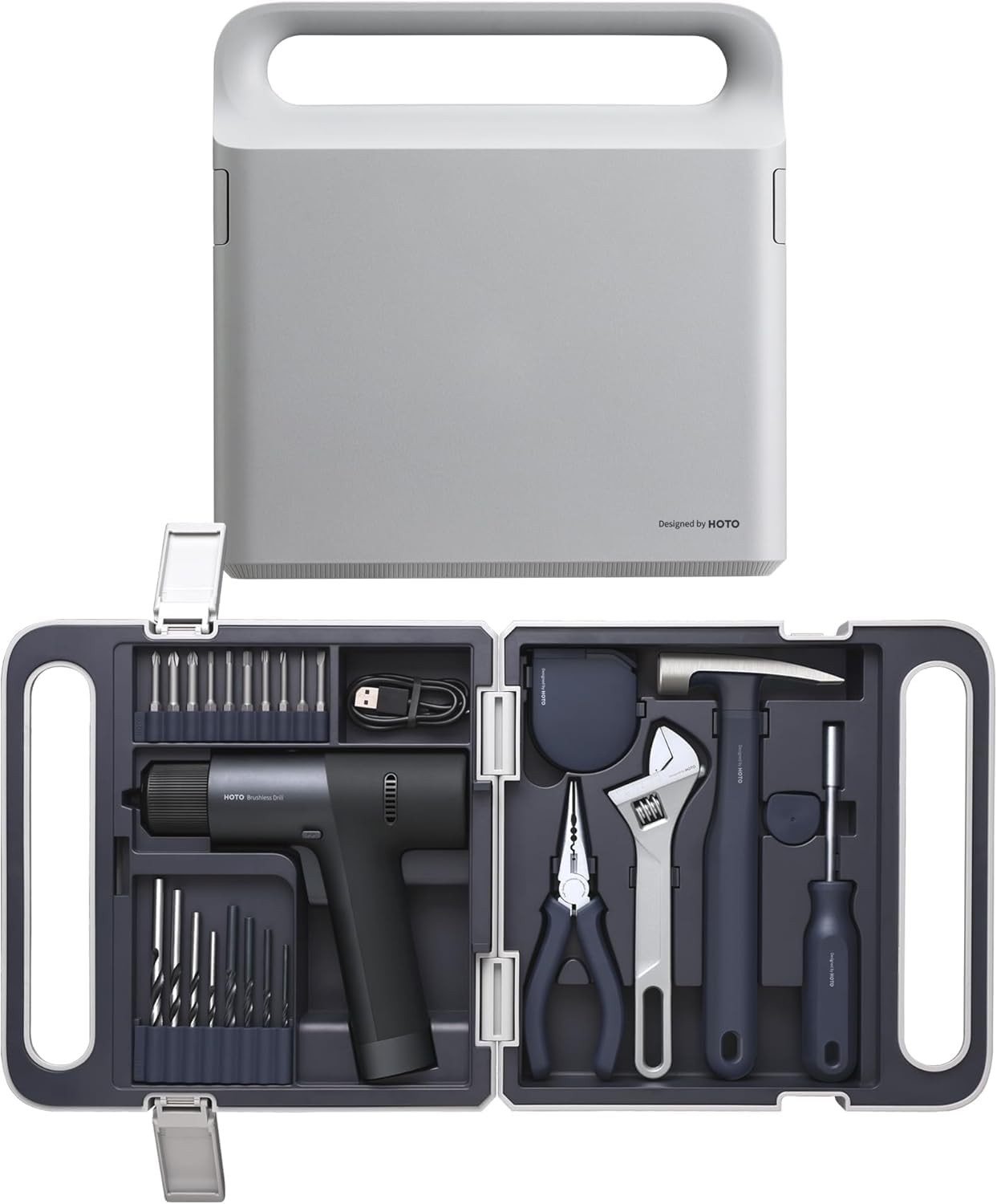 HOTO Set Attrezzi Completo con Trapano Elettrico 12V, Avvitatore a Batteria Brushless 30 Nm con Display LED, Trapano a Batteria Potente e Pratico, Ideale per Fai da Te e Riparazioni Domestiche